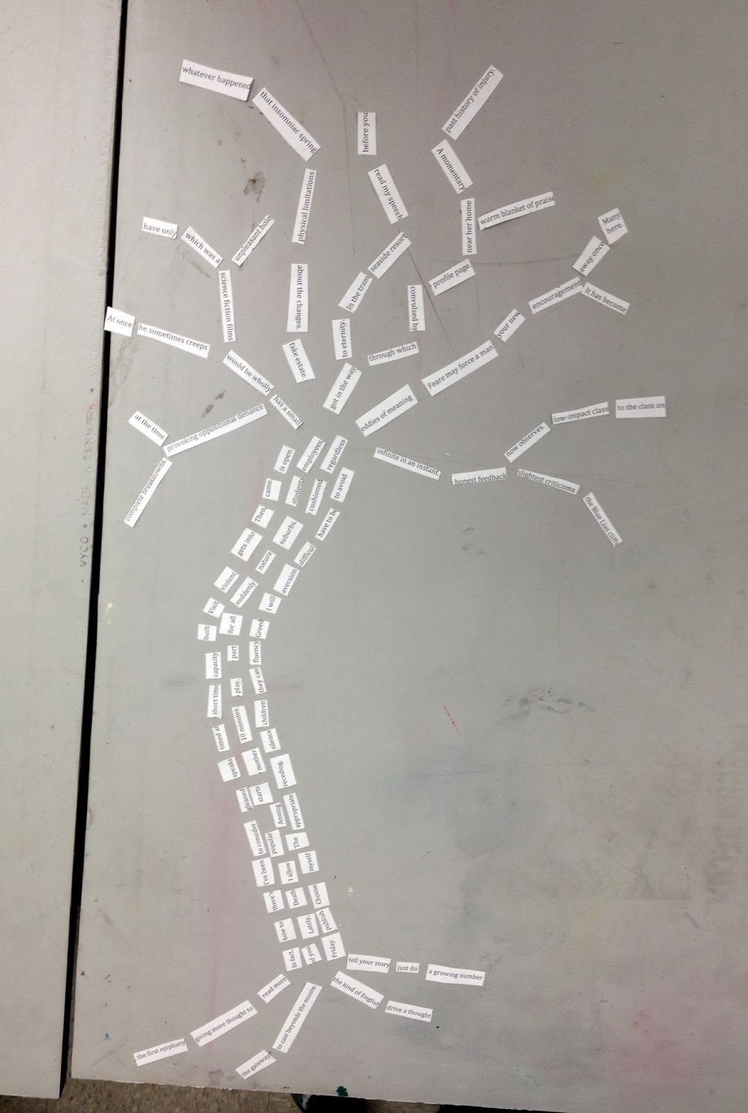Being in a class with art majors has given me a glimpse into the art world—a world where trinkets arranged in boxes help people think about exploration, and a pile of jumbled words produces a 3D object.